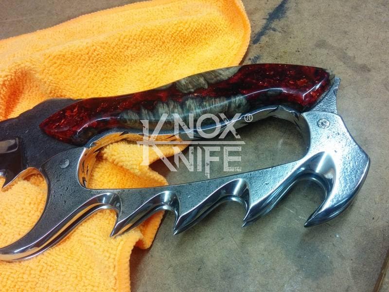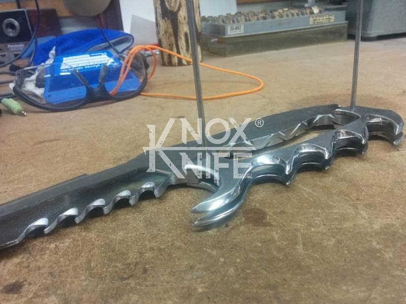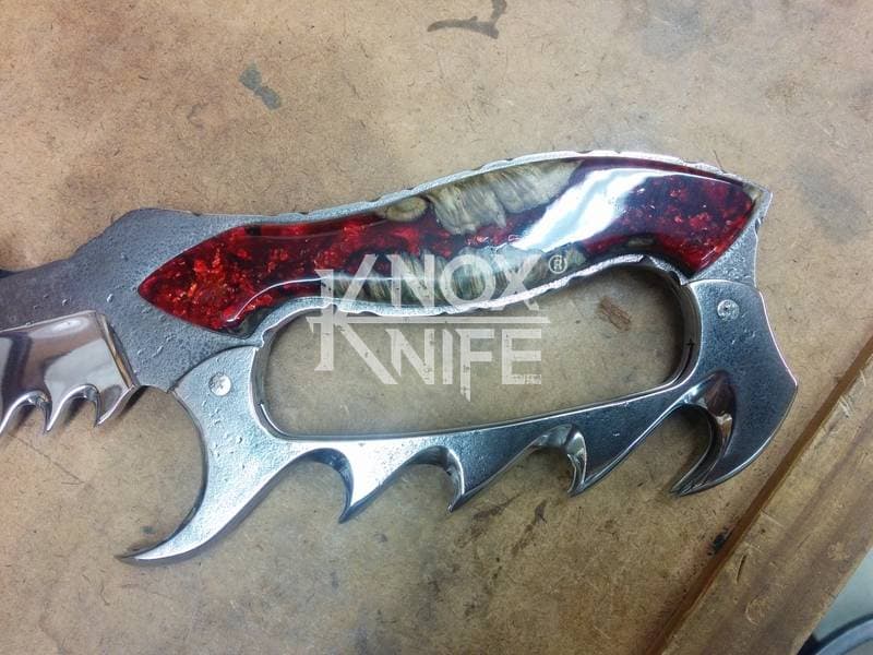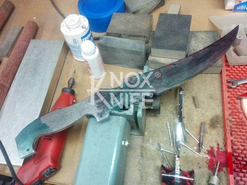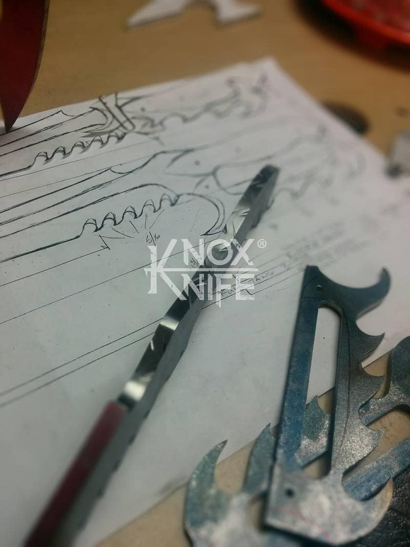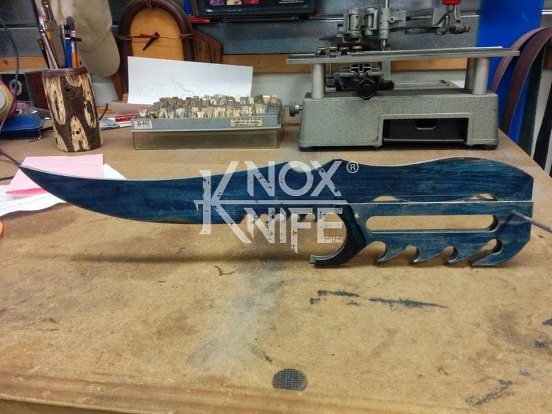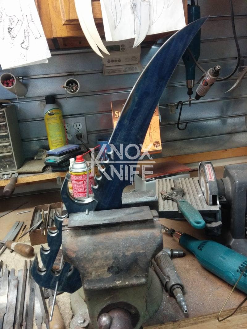 My buddy George sent me a knife design he had stuck in his head (1st image) so we went back and forth awhile and came up with a pretty cool idea (2nd image). This was one of those pieces that even surprised me when it was done and George likes it so much he got it as a tattoo. George always has me making interesting stuff.