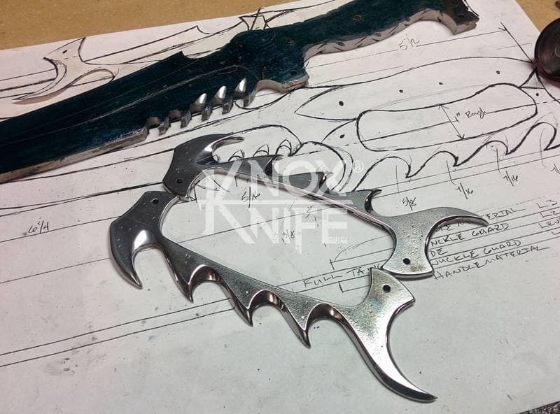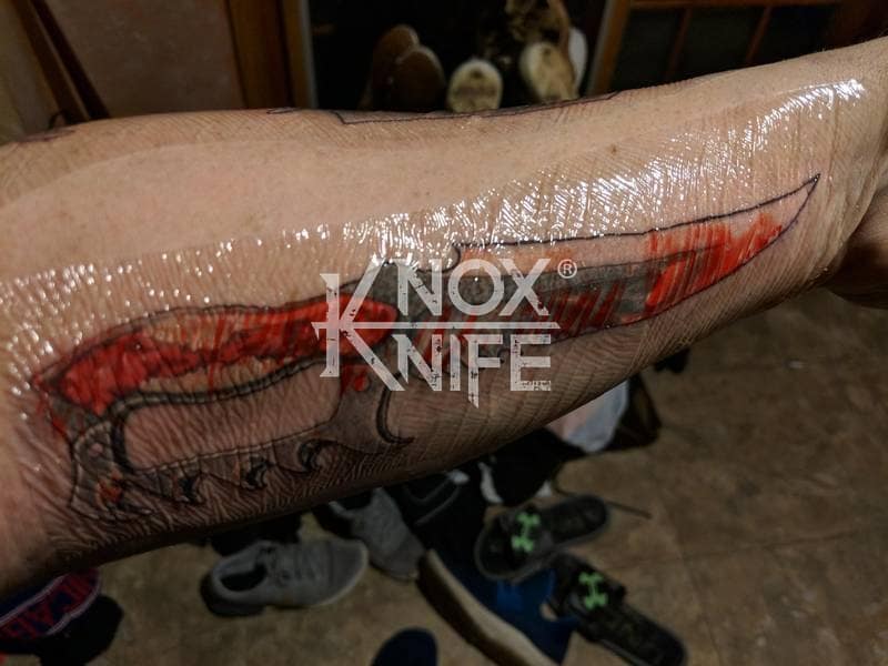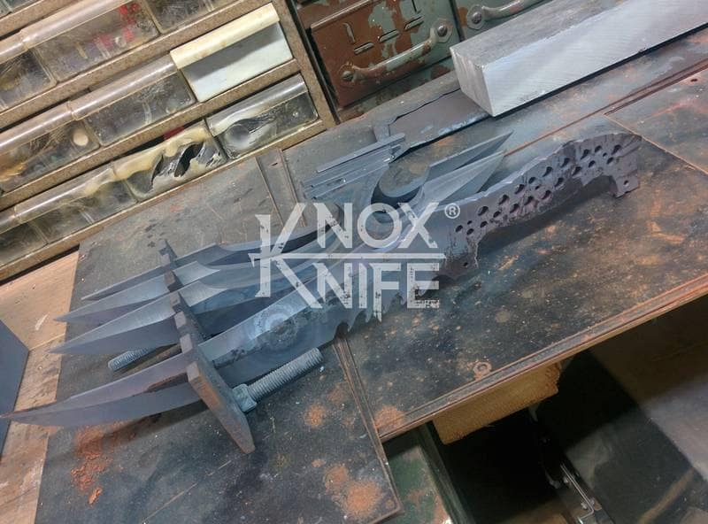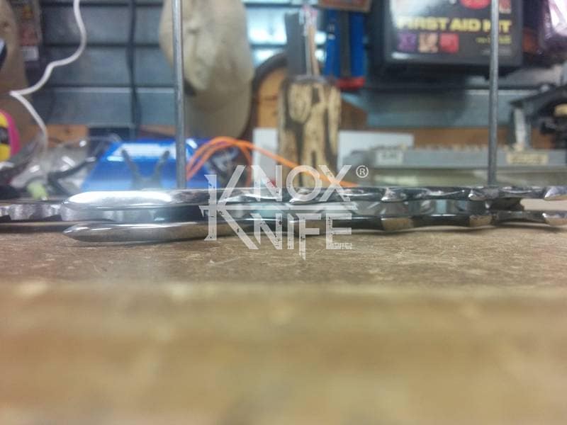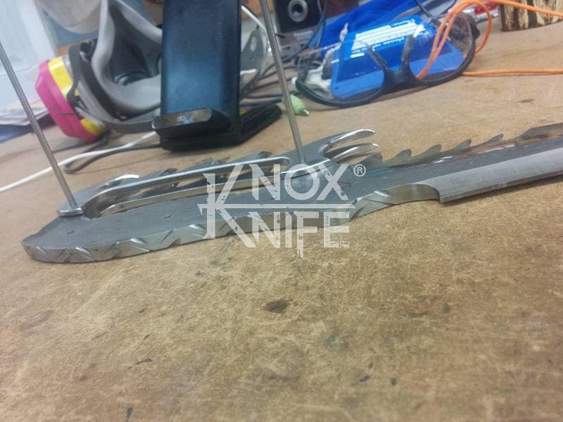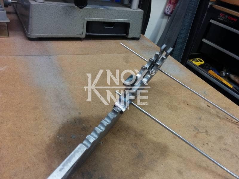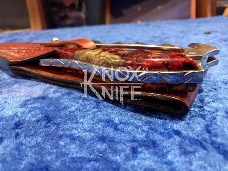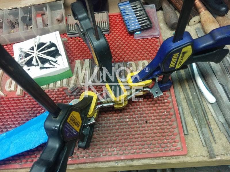 My buddy George sent me a knife design he had stuck in his head (1st image) so we went back and forth awhile and came up with a pretty cool idea (2nd image). This was one of those pieces that even surprised me when it was done and George likes it so much he got it as a tattoo. George always has me making interesting stuff.