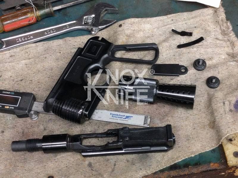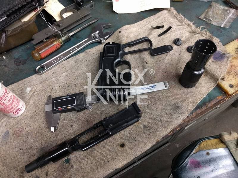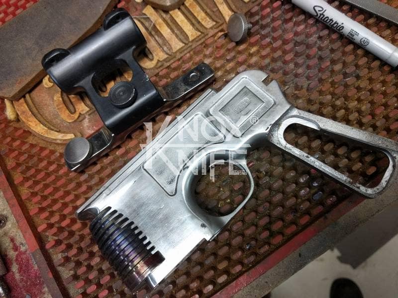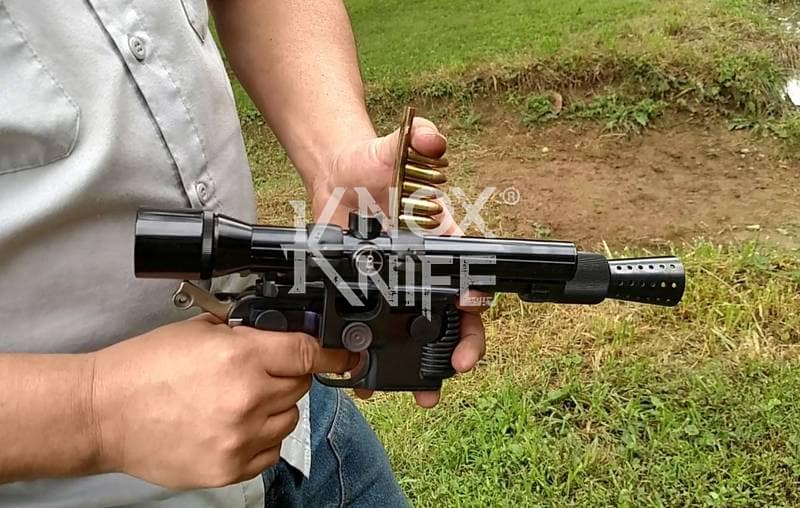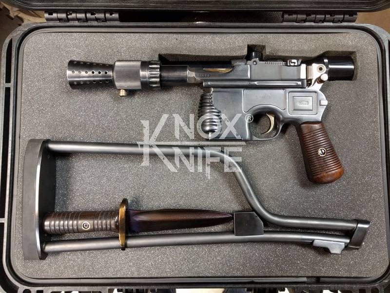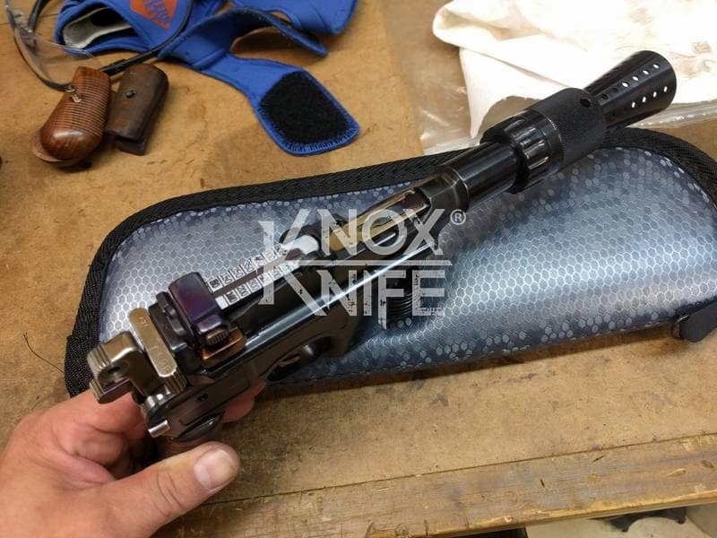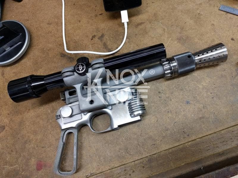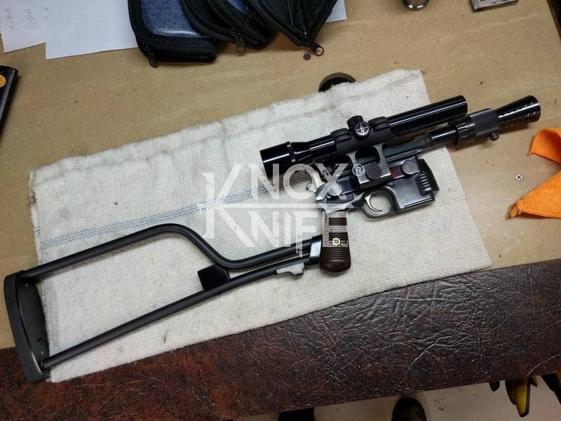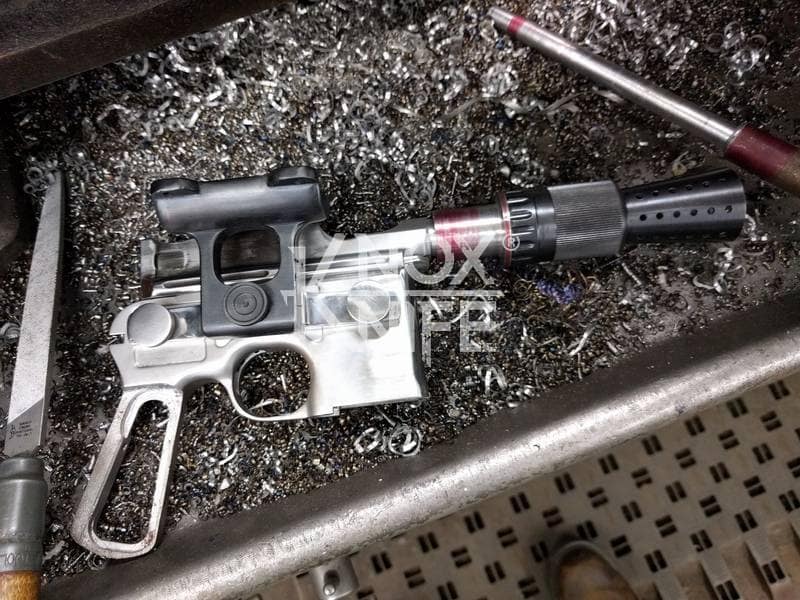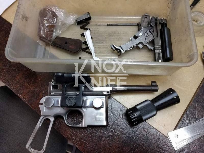 I got together with life long friend, gunsmith Otto M. from OTTOCOMP, find him on Facebook. We took it down to the white, re-chambered it in 9mm and built it back to what a Broomhandle would look like new and added on the Han Solo Star Wars blaster features in and on.