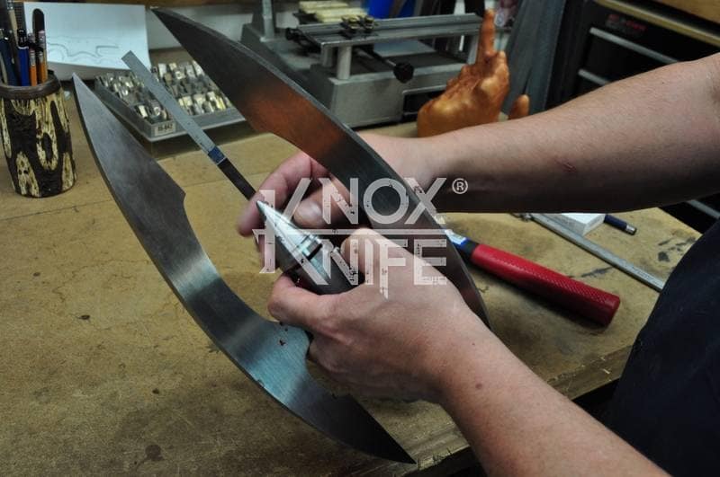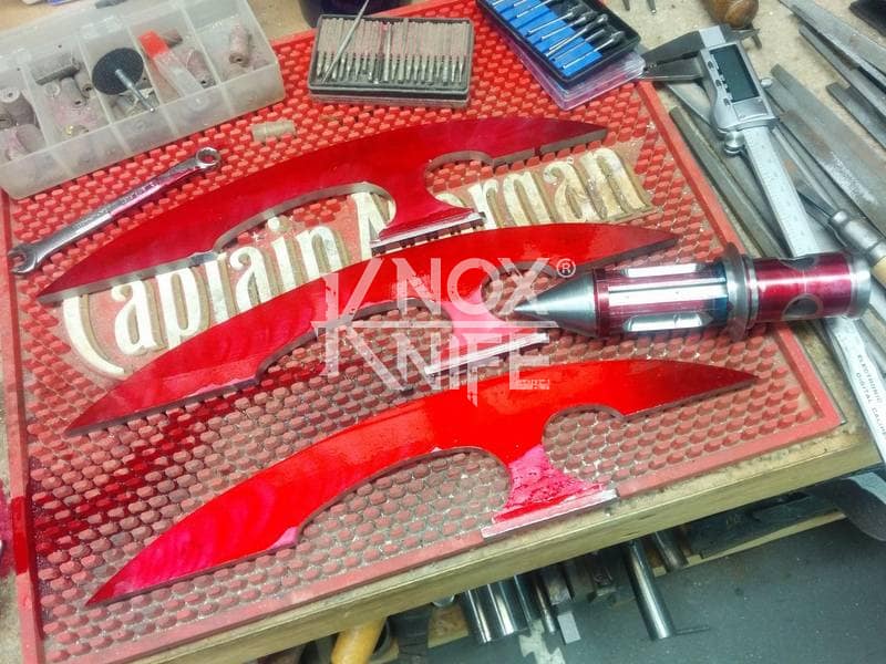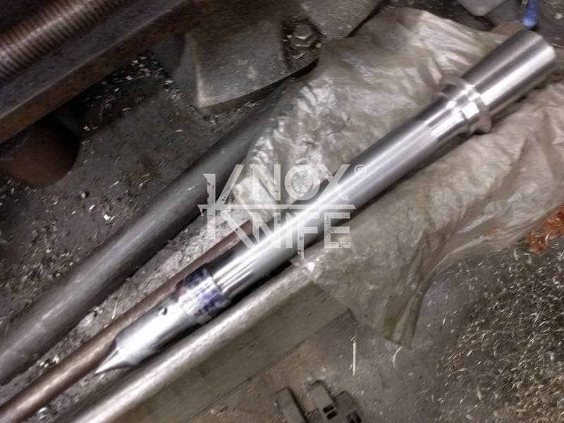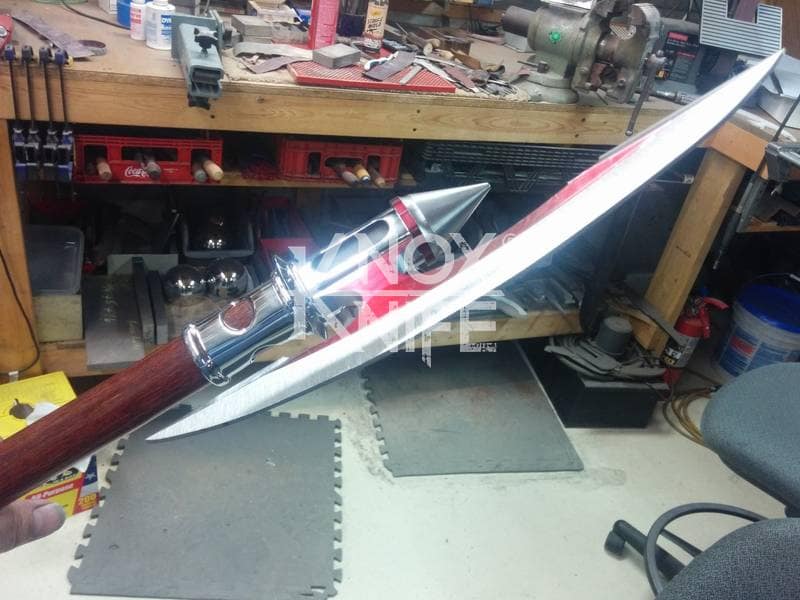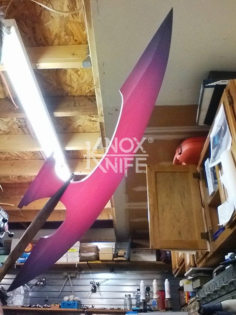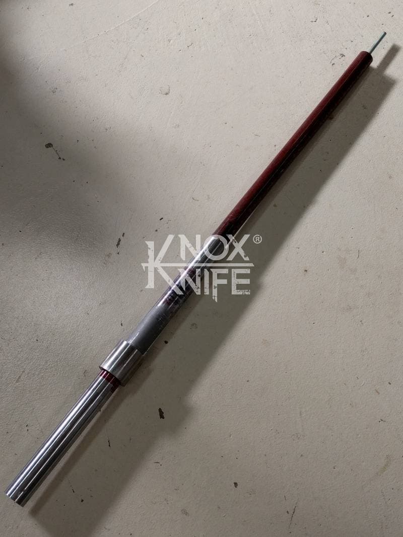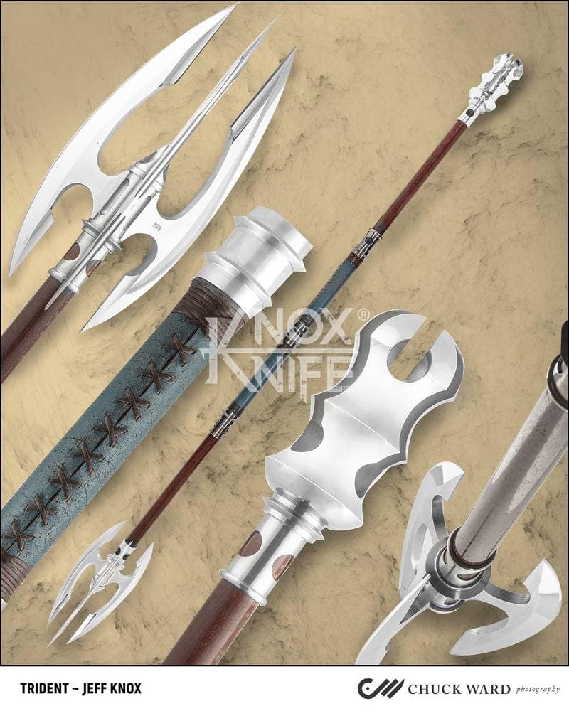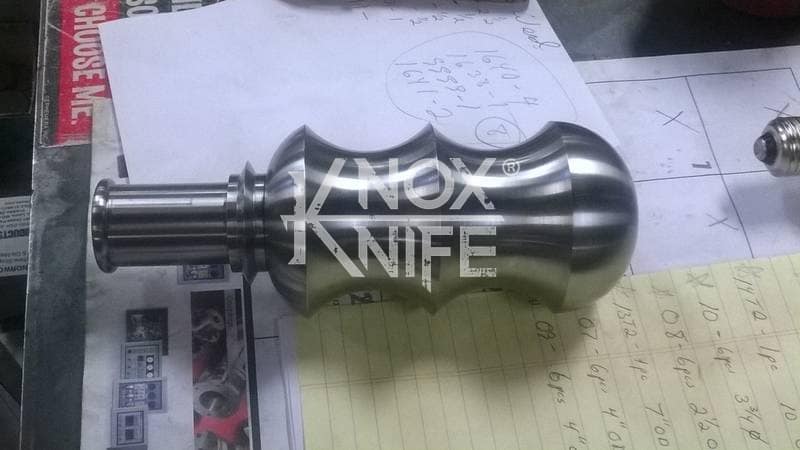 Being a gadget addict, I designed the MKII so if you push both grips towards the center and twist, the 1 weapon becomes 2 battle maces. I also made a vertical display stand that disassembles and also fits in the custom Pelican case.