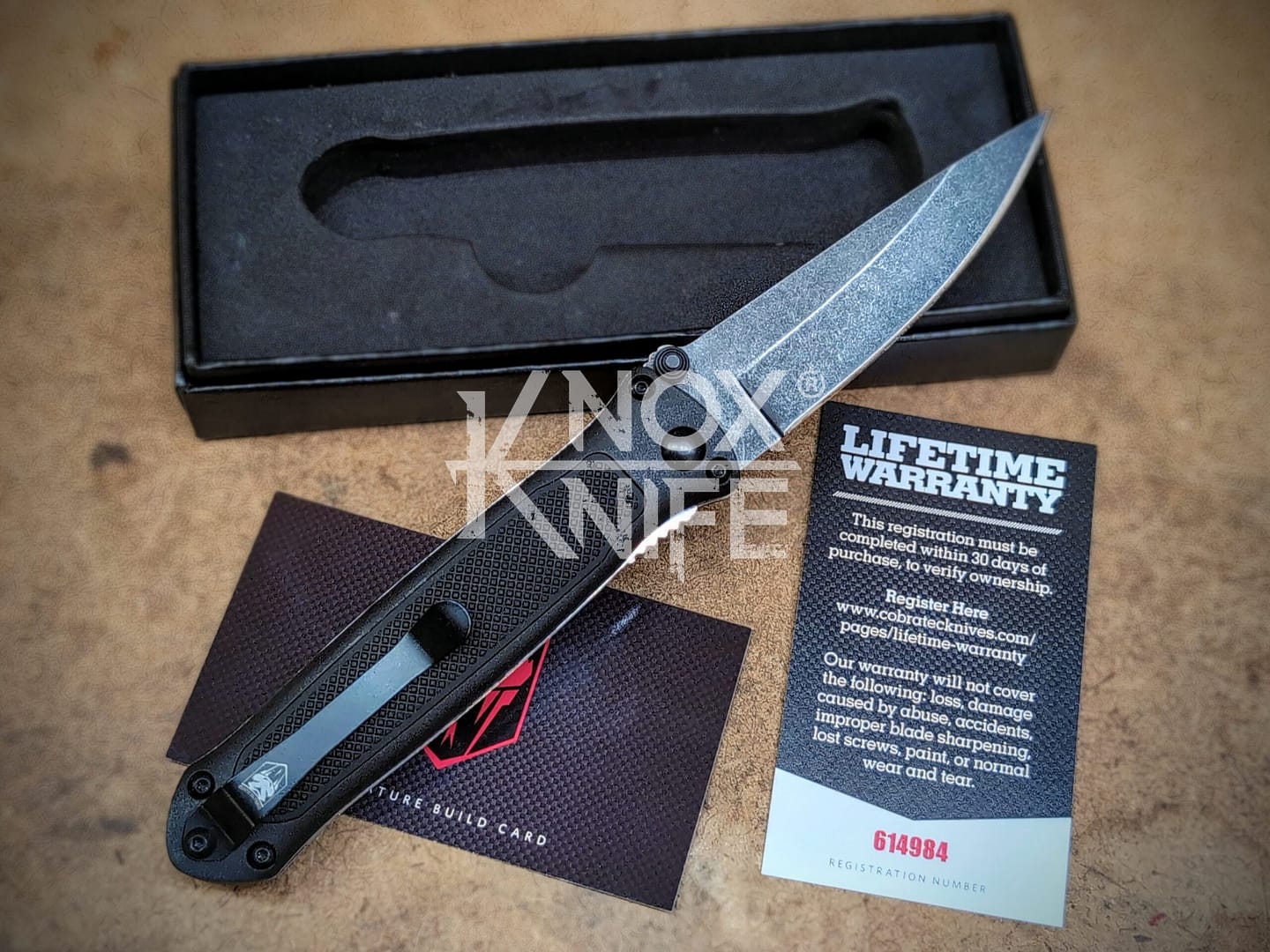 The CobraTec hidden release automatic knife comes with G-10 scales, knurled rubberized grip and a black stonewashed 440 stainless steel blade. The hidden release button is hidden inside the handle. This automatic folding knife can also be used as a thumb assist folder. This second generation of the Quick Strike was redesigned with a pocket clip for right hand carry.