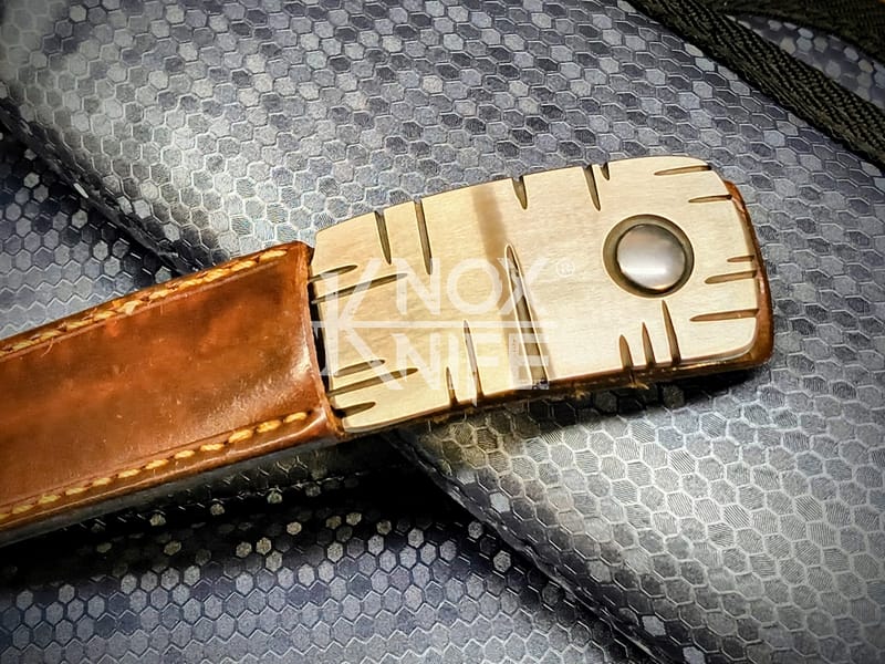 This system allows for the wearer to draw and sheath the knife, at will, without undoing the belt.